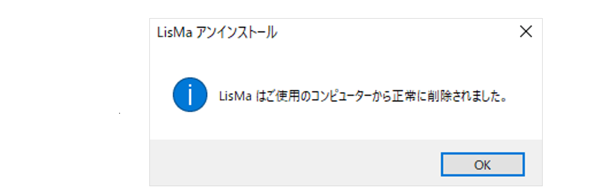 「LisMaはご使用のコンピューターから正常に削除されました。」と表示されれば